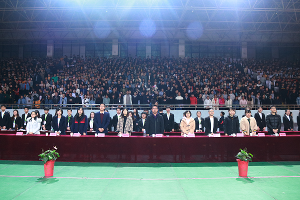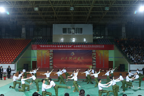 为纪念五四运动100周年,我院于2019年3月21日晚在体育馆隆重举行以“青春在新时代闪光·青春奋斗正当时”为主题的大学生集体舞比赛,校团委书记王忠凯、团委宋倩老师以及各二级院系基层团委书记出席并担任评委,各学院学生代表观看。