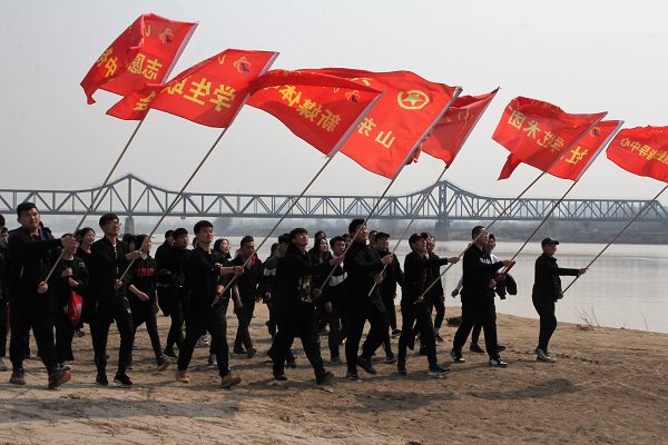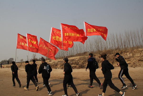 漫漫黄沙的河滩上,一支举着红色旗帜的队伍精神烁烁,意气风发。在母亲河畔,学生骨干们相互打气,将徒步拉练变得富有激情和活力。所及之处皆是风景,同学们的脸上没有写着徒步的辛苦和劳累,更多的是愉快和兴奋。在校团委王忠凯书记的带领和鼓励下,同学们更多的是将这次的拉练活动当成一次踏青,一次春天故事的寻访。