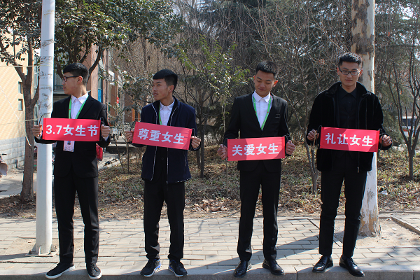 来自校学生会的工作人员起手持印有活动标语宣传女生节的小彩旗和宣传画行走在校园之中,宣传着女生节的到来,本次活动的口号是“关爱女生、尊重女生、礼让女生、树立文明新风”,让女性同胞们加强对女生节的认识,加强我校尊重女生、重视女生的风尚,提升我校女生的时代意识和个人创造意识。