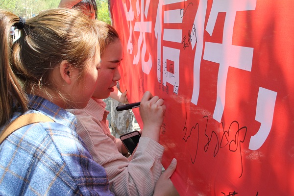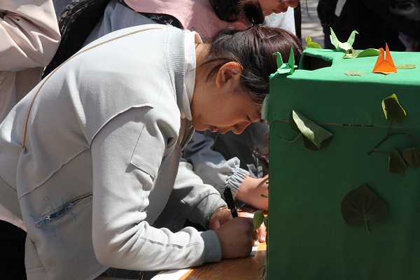 同学们在干事的协助下有秩序地排队等待,他们将自己的烦心事、对过去的自己想说的话、对自己未来的展望都写在卡片上,放进“树洞”中,有些同学下笔犹豫不决,有些同学坚定有力地写下一字一句,相信大家在写下心事后都会有所收获有所感悟。