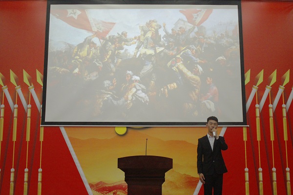 医学院 陈志同学:“70年前,人民英雄纪念碑奠基礼,毛主席培了第一锹土…”激昂的语调,铿锵有力的声音,表达了大屠杀纪念馆和四行仓库前着日本军装的脑残精日让人痛恨。英烈,也需要我们来守护!