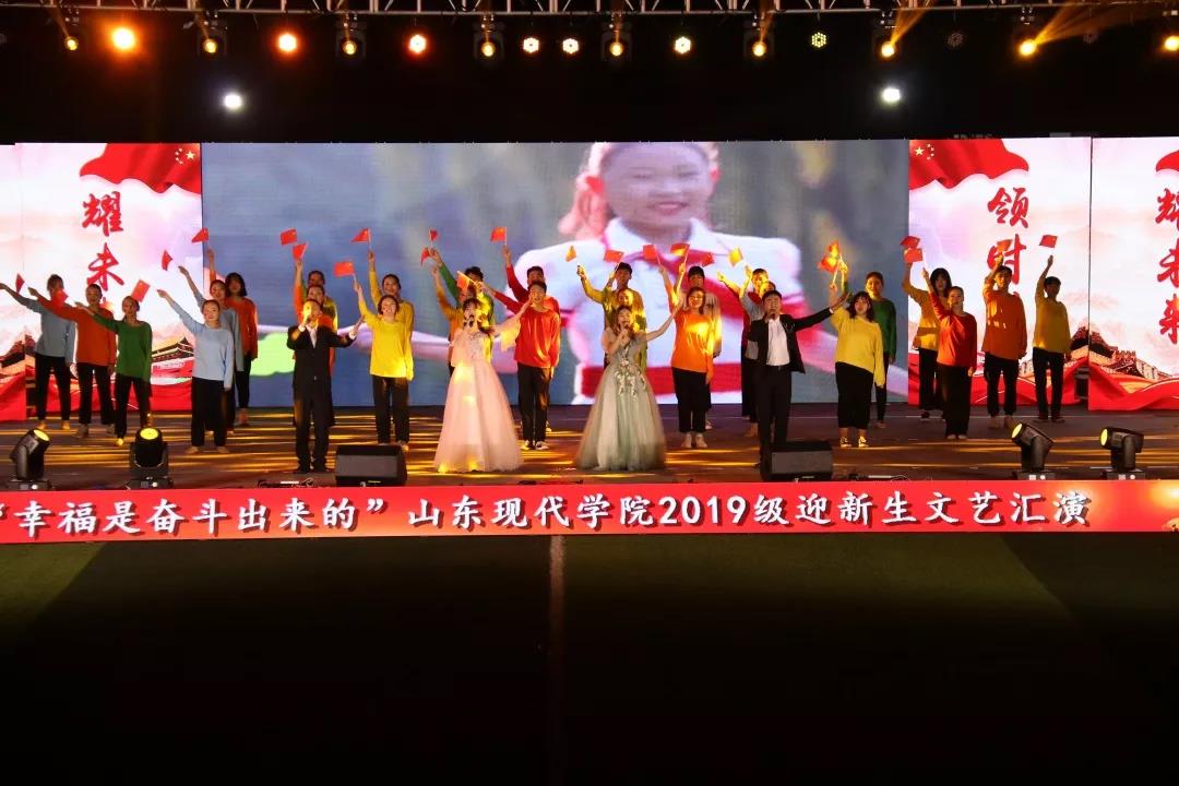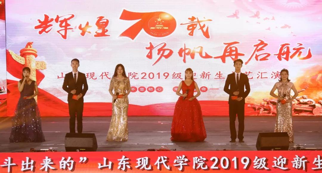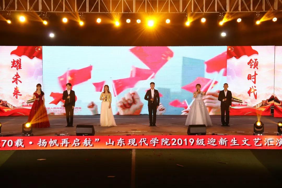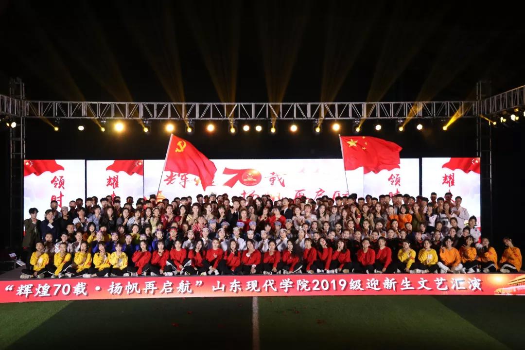 2019年10月17日18点30分,“辉煌70载,扬帆再启航”山东现代学院2019级迎新生文艺汇演在万人体育场举行,全校万名师生共同参与,出席本次晚会的领导有山东现代学院副院长房庆平,院长助理解银萍、宋国增,学生处副处长杨冠峰、李秀彬、边时勇,二级学院常务副院长,校团委书记王忠凯、宋倩老师。