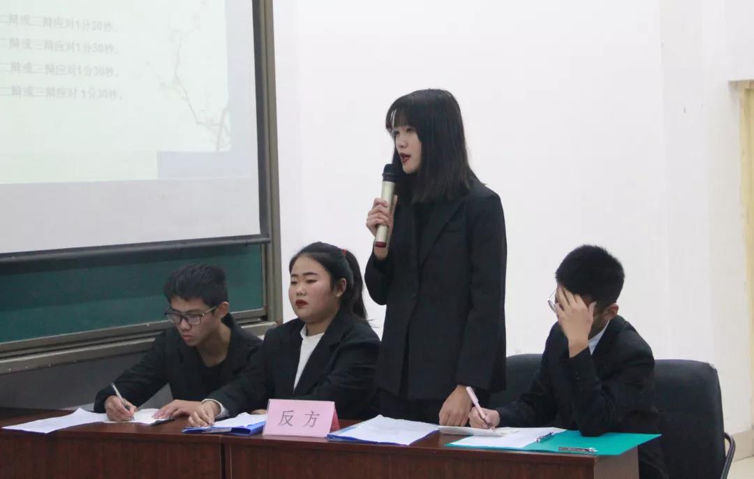 本次赛事先在各院系之内进行比拼选拔。复赛采用的是比赛过程中不宣布学院的方式,各参赛队伍提前抽取代表号。活动正式开始,主持人一声“开始”后,辩论选手开始阐述自己的观点并对其进行举例论证。