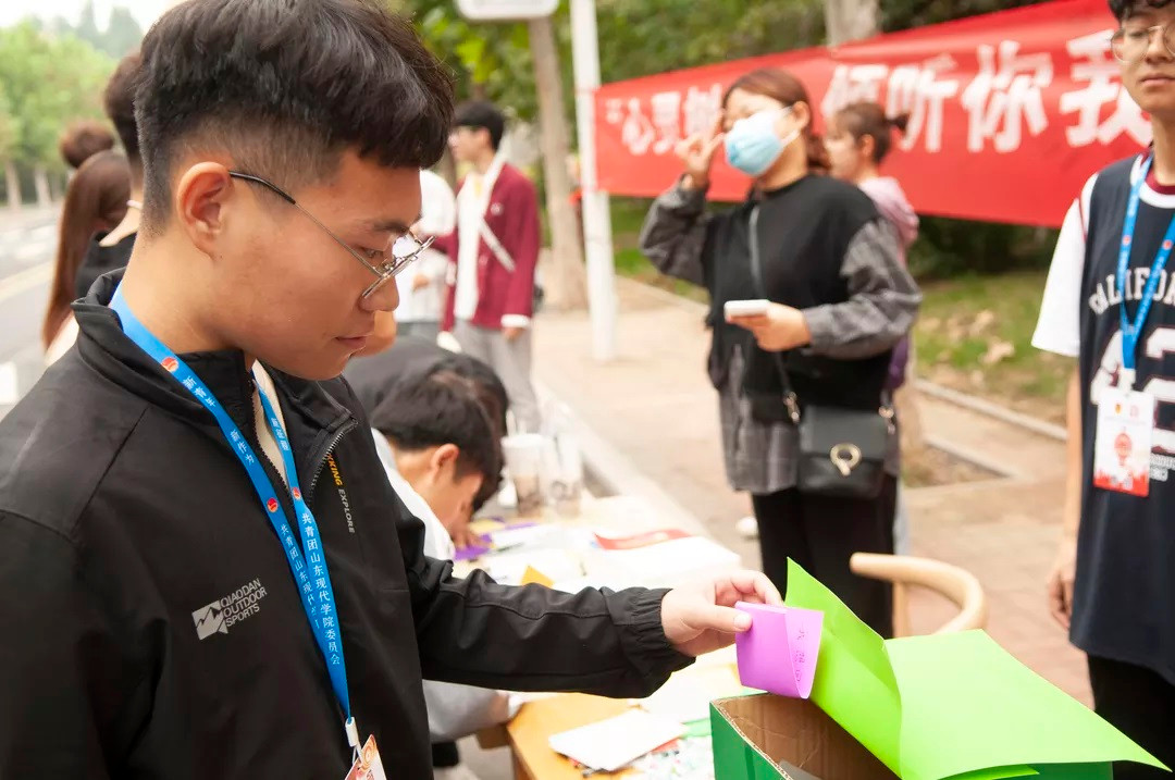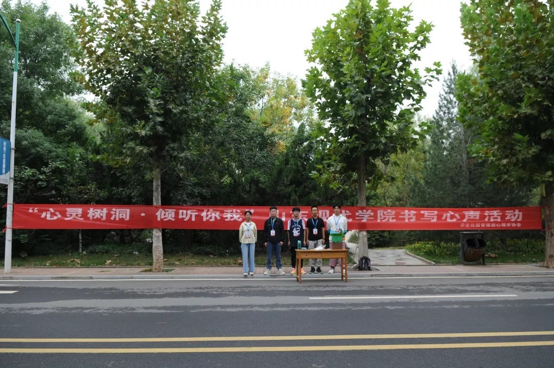 为了解山东现代学院大学生心理情况,促进在校大学生心理健康发展,由共青团山东现代学院委员会主办,学生社团管理部心理学协会承办的“心灵树洞,倾听你我”为主题的活动于2020年9月29日在悯农餐厅和崇俭餐厅之间举办。