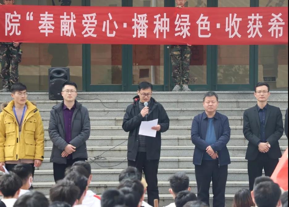 近日,我校举办的“奉献爱心·播种绿色·收获希望”植树活动在春天的序曲中拉开帷幕,院长助理吴启军,学生处副处长杨冠峰、辛松涛,以及各二级学院学管干部出席活动。