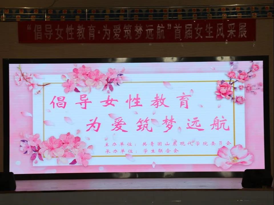 2021年3月25日14时,由共青团山东现代学院委员会主办、学生联合会承办的“倡导女性教育·为爱筑梦远航”首届女生风采展活动在体育馆隆重举行。校团委许建栋老师及各二级院系学管老师、辅导员老师出席本次活动。