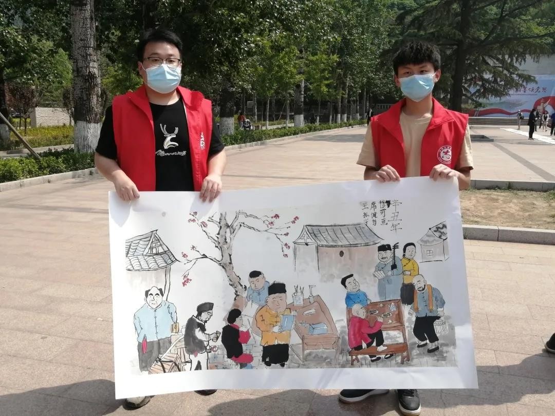 2021年5月11日,四里村街道党工委邀请我校志愿者服务中心参加“英雄山下党旗红”系列党建活动之“丹青书盛世·翰墨颂党恩”活动。