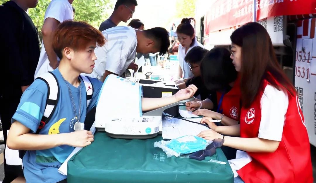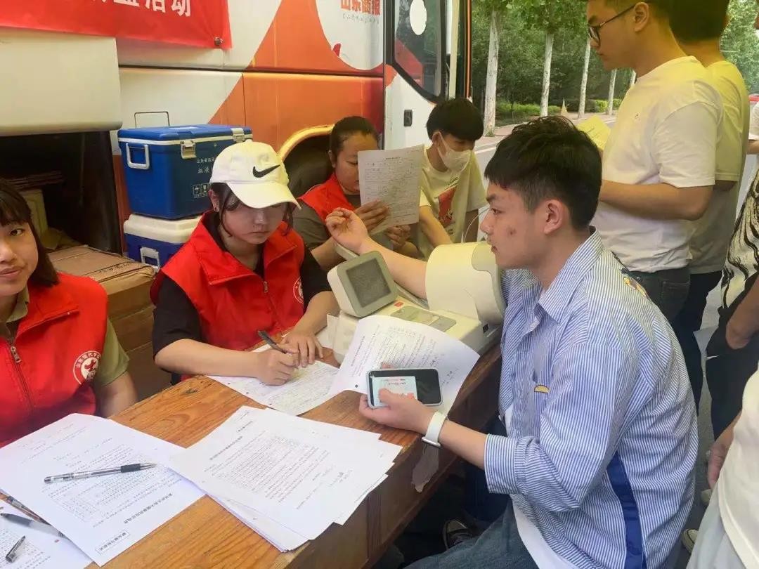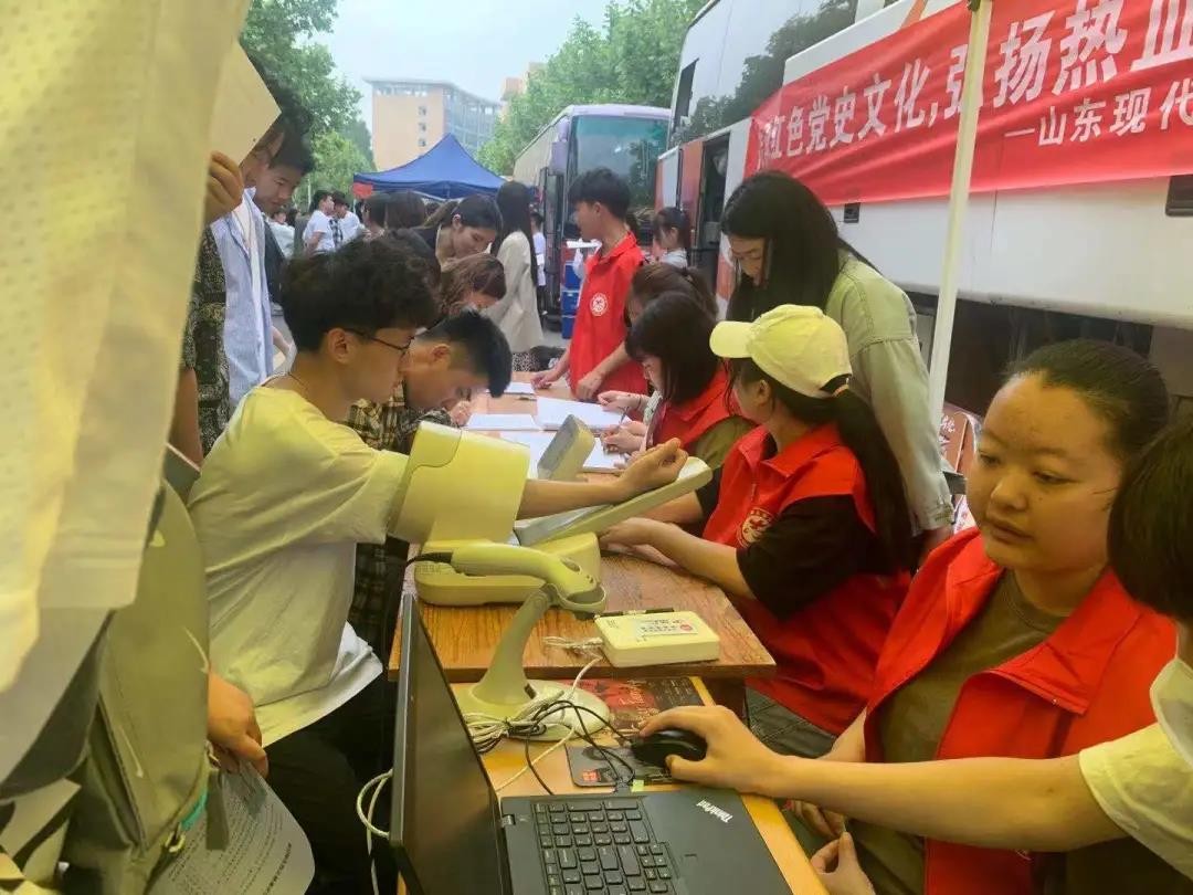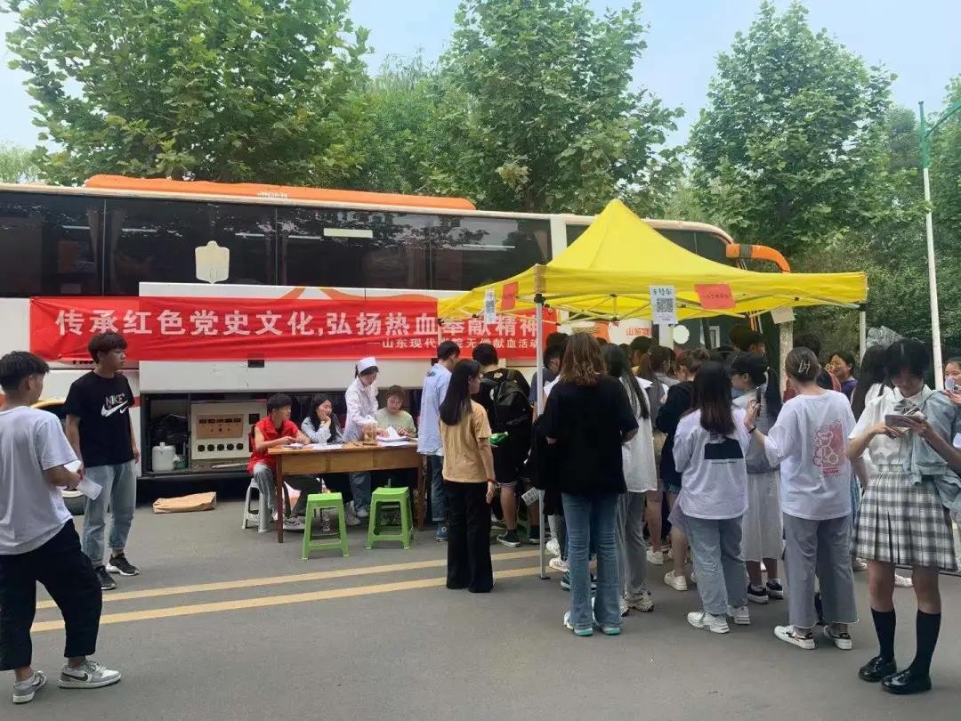 山东现代学院志愿者服务中心为响应国家对无偿献血的号召,贯彻落实“人道、博爱、奉献”的志愿服务宗旨,继承和发扬团结友爱、助人为乐的中华传统美德,扎实推进和建立科学化、高效化的志愿服务运行机制,于2021年5月13日配合山东省血液中心在敬业路举办大型无偿献血公益活动。