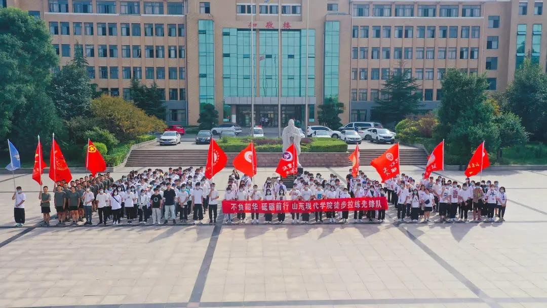 9月16日,学生处组织各二级学院开展徒步拉练活动,由各二级学院学生代表组成的山东现代学院徒步拉练先锋队在明德广场前集合,他们气宇轩昂,蓄势待发。