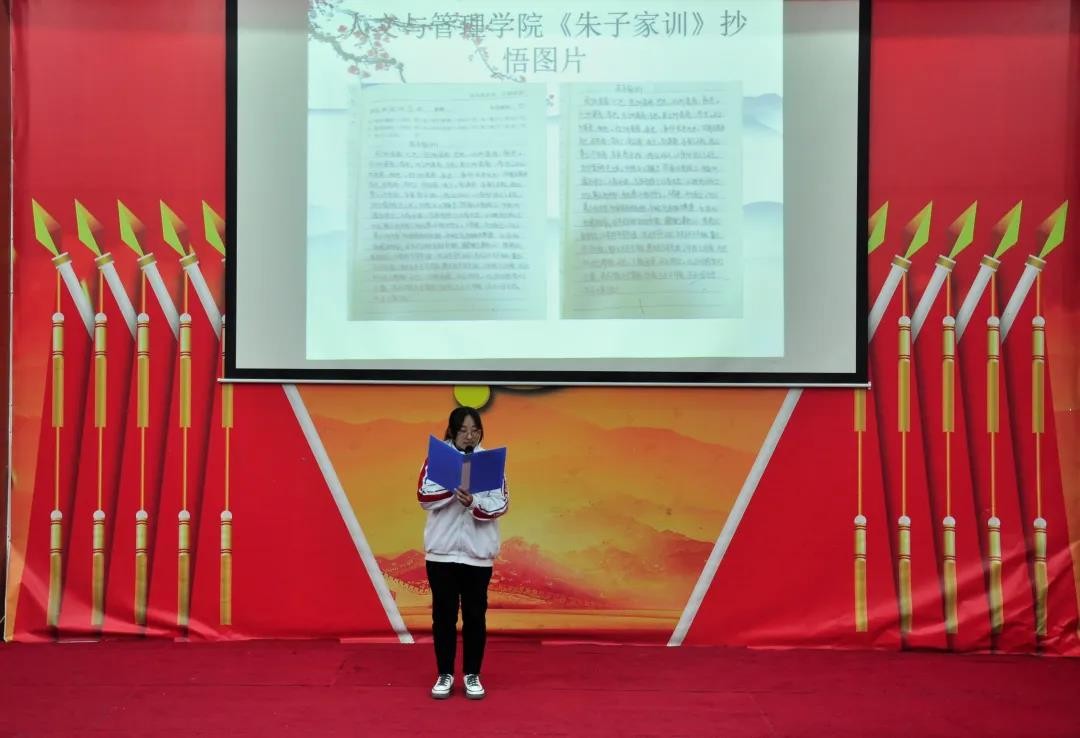 家风、家训反映着一个家庭的氛围,同时也能折射出社会的风气。人文与管理学院和五年大专部的同学分享了《朱子家训》中事师长、交朋友的礼节与信义,未雨绸缪的睿智,懂得适时退让的大度,诱惑面前的适宜克制……一同感受先哲带来的智慧处世之道。