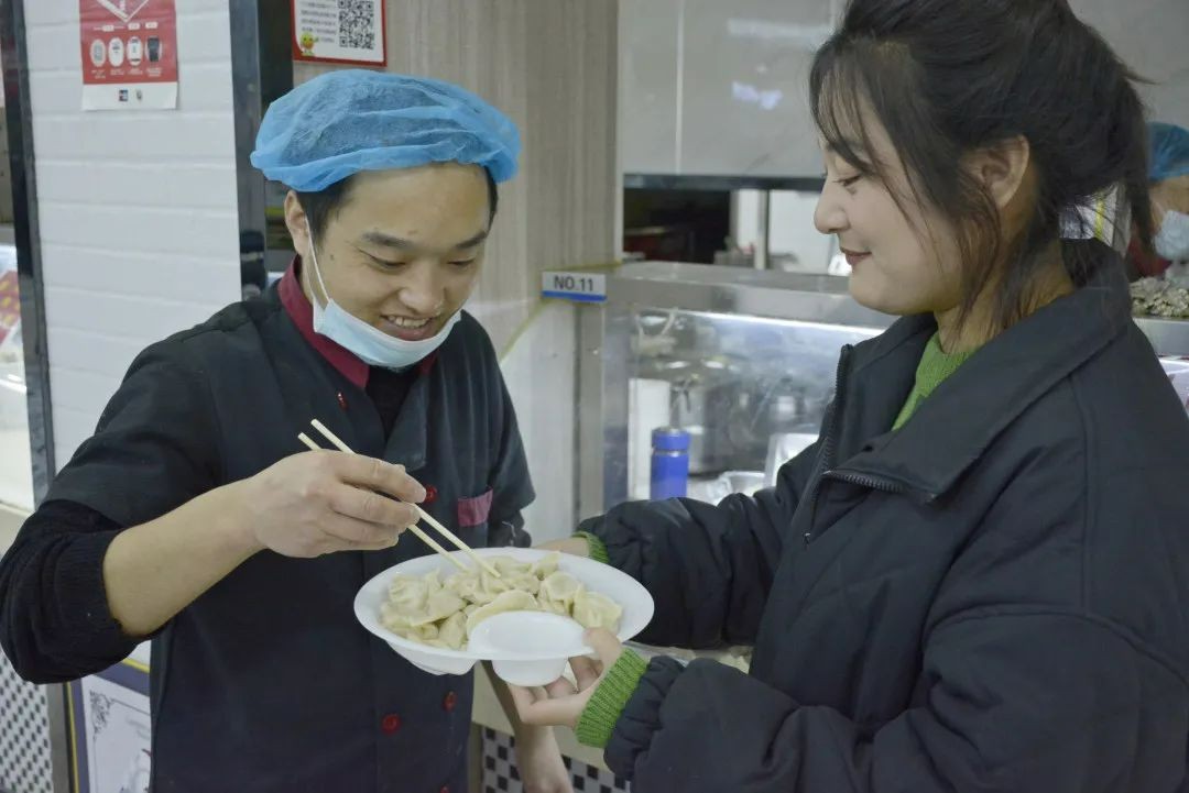 在一片欢声笑语中,热气腾腾的饺子送上了餐桌。大家在一起品尝着自己动手包出的饺子不仅感受到了快乐,还增进了彼此之间的感情。饺子有大有小形状各异它的外形可能不算漂亮、味道不算顶尖但它的温情却洋溢在大家心间,煮熟的饺子分发到食堂工作人员手中爱与温暖在大家手中传递。