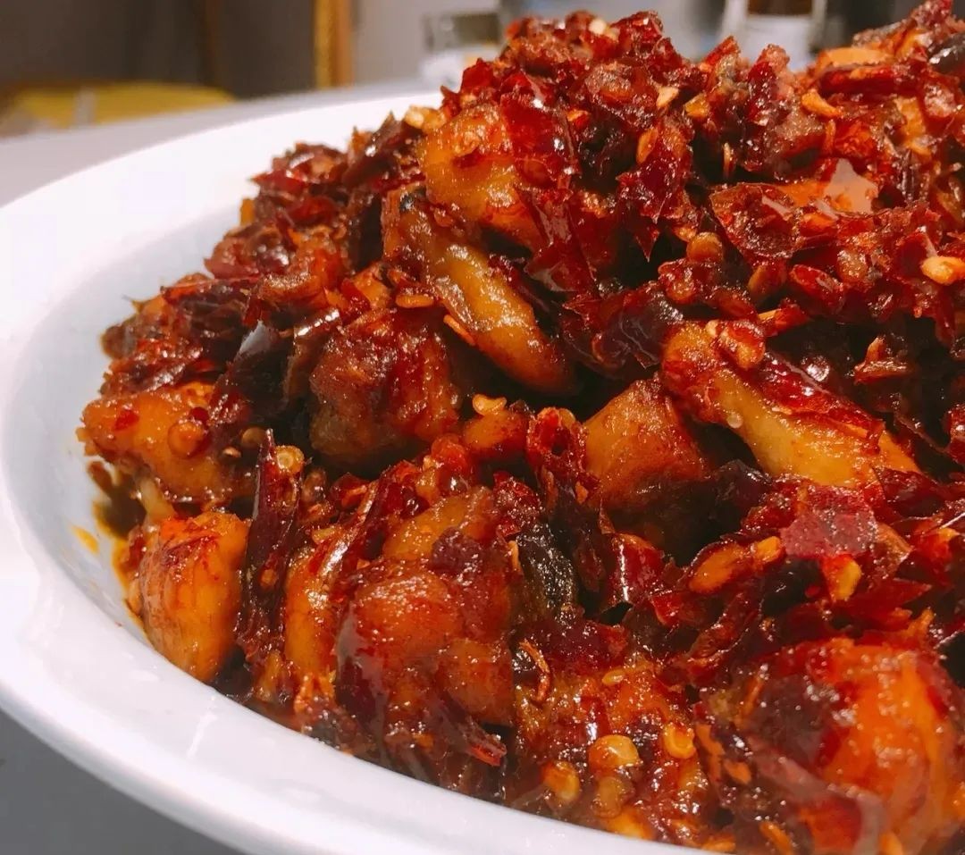 配以贵州特有的糍粑辣椒,小火慢慢的炸香辣椒,再加上姜蒜花椒,炒出香辣四溢的底料,鸡块与油辣子交织、碰撞,擦出鲜香带辣的火花,皮糯肉酥,香味绵长,让人食欲大动。