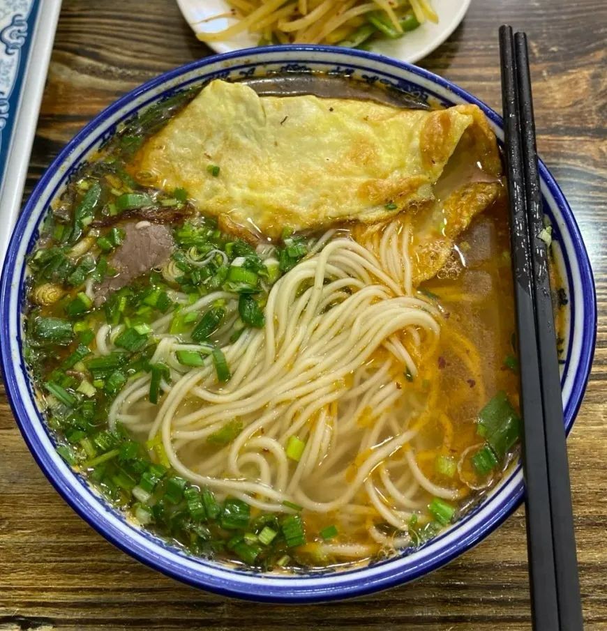 “一清二白三绿四红”的是兰州拉面,当地人也称其为牛肉面,西北的新鲜牛肉配上牛骨汤,肉烂汤鲜,面质精细,汤与面的完美结合,唤醒了独属于家乡的温情。