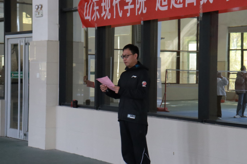 赛前,闫春明老师发表讲话,鼓励参赛选手“团结友爱,奋勇拼搏赛出水平,赛出风格,赛出友谊。”