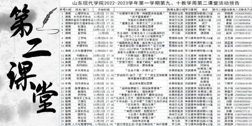山东现代学院2022-2023学年第一学期第九、十教学周“第二课堂”来啦,快来看看有没有你心动的课程吧!