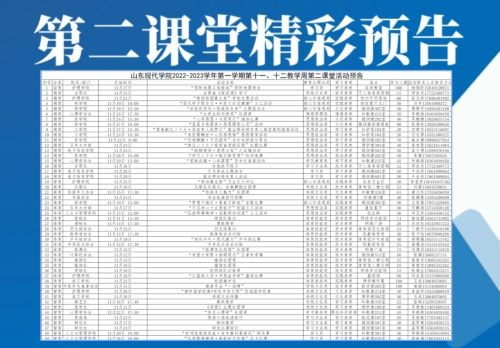 “第二课堂”活动主要是针对“第一课堂”而言的,“第二课堂”活动生动活泼、丰富多彩、学习空间范围广大,是全校学生拓宽视野、增强能力的有效途径之一,意在培养学生的综合素养和竞争力,让同学们德、智、体、美、劳全面协调发展,收获精彩的大学生活!