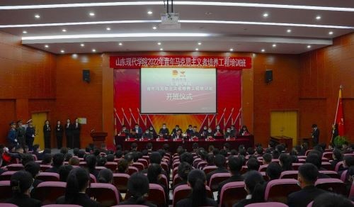 为深入学习贯彻落实习近平新时代中国特色社会主义思想,弘扬党史文化,引导学校青年学生高扬理想信念旗帜,增进对党的政治认同、思想认同、情感认同。我校于11月17日在博学楼101室举行了“山东现代学院2022年青年马克思主义者培养工程培训班”开班仪式。校党委书记赵友春同志,学生处党支部书记、院长助理兼医学院执行院长房昌盛,人文与管理学院党支部书记、学生处处长兼人文与管理学院执行院长刘锦绣、各学院党总支书记、团总支书记以及我院2022年青年马克思主义者培养工程培训班211名学员参加了此次开班仪式,会议由校团委书记徐志峰主持。