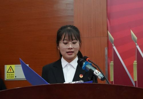 青马班学员代表邱玉娇同学进行发言。她表达了一定更加努力学习,在学习中进步、在实践中成长、在奉献中升华。不忘初心、牢记使命、努力实践、勇于创新、甘于奉献,争做马克思主义理论的青年实践者,做文明城市建设的青年主力军。