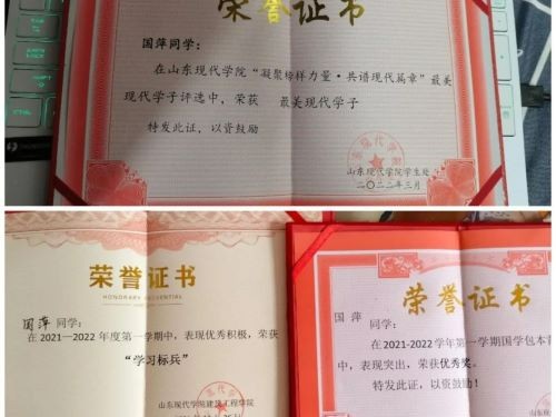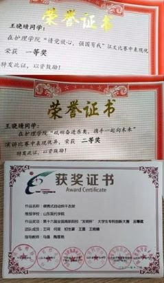 周如金,男,2020级本科学前教育1班班长。他学习成绩优异,是学习中的攀登者,坚持不懈,知难而进;他步履不停,收获进步,勇攀新的高峰,曾获得2021年山东省青少年教育科学规划项目大学生学术课题立项证书、结项证书;绚丽年华第十四届全国美育教学成果展一等奖等多项荣誉。