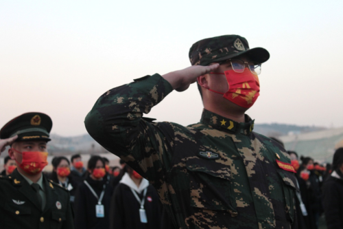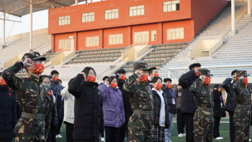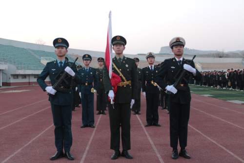 学生代表姚先鹏带领全体学生面向国旗庄严宣誓