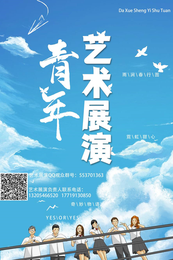 想观看本次青年艺术展演的家人们请及时扫描海报上的二维码或搜索群号加入QQ观众群哦,群号为:553701363,承办方会在群内发布具体抢票通知及方式。