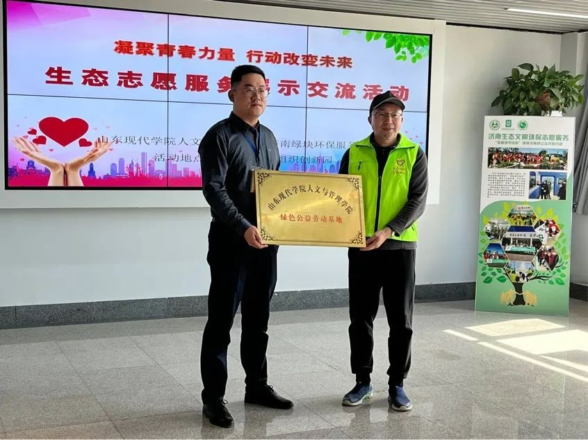 为了贯彻落实绿色发展理念,培养学生良好的行为习惯,进一步践行低碳生活理念,营造绿色低碳的校园环境。5月8日下午,山东现代学院人文与管理学院绿色公益劳动教育基地挂牌仪式在济南市高新区民生大厦五楼举行。