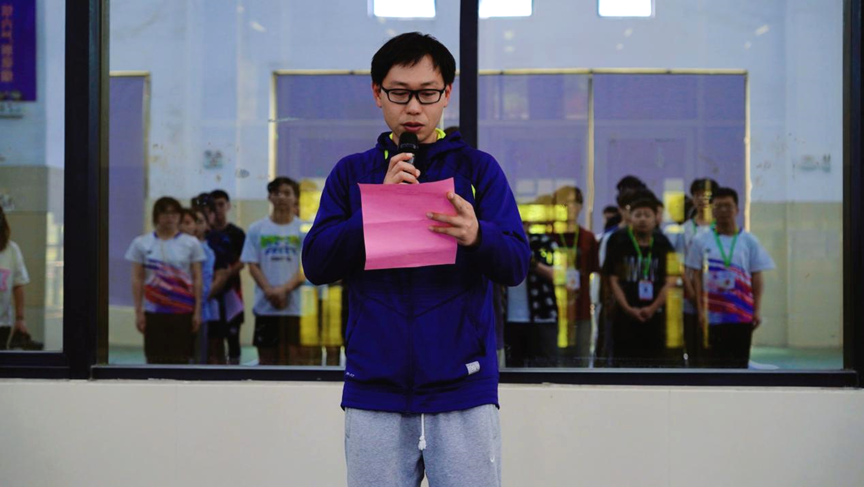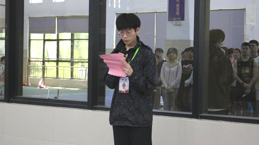 体育教研室闫春明主任致开幕辞,他希望全体运动员发扬“团结友爱、奋勇拼搏”的精神,赛出风格,赛出水平。