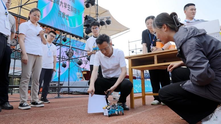 开幕式结束后,由工学院和电子信息学院参加2023中国工程机器人大赛暨国际公开赛获奖学生代表现场展示机器人作品。