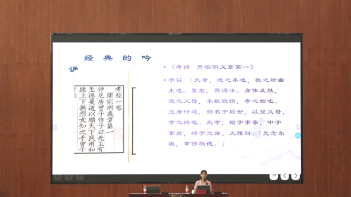 “胸藏文墨虚若谷,腹有诗书气自华。”讲座伊始,陶波老师向在座学子们吟诵了《静夜思》,声音婉转悠扬,悦耳动听,激发了同学们对于吟诵的兴趣。