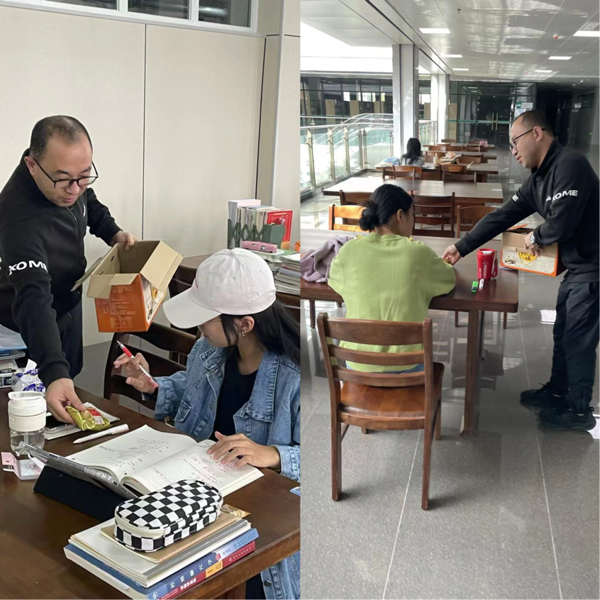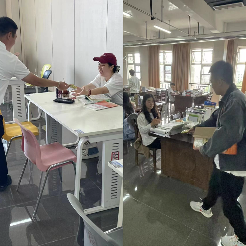 浓浓中秋情,情深暖人心。图书馆里,一份份满载着关怀之情的月饼被送到了每位学生的手中,每位学生都洋溢着幸福的笑容,喜悦之情溢于言表。