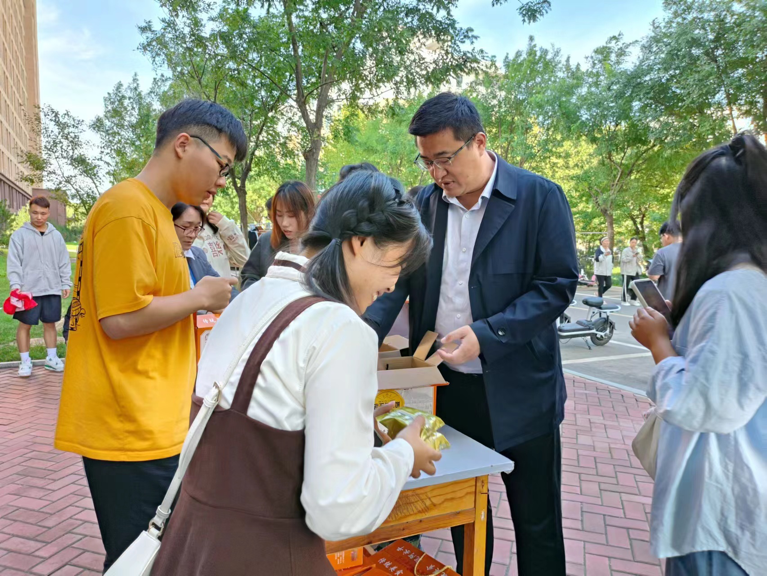 学校为每一名师生准备了中秋月饼,值班老师走访学生宿舍,与同学们畅聊校庆活动、学业情况、生涯规划等话题,向同学们致以美好的中秋祝福。