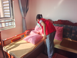 志愿者们走访五户人家并为老人们送节日月饼,同时,叮嘱老人保重身体,鼓励老人保持积极乐观的生活态度。志愿者们详细询问老人的身体状况和生活情况,认真倾听老人们的生活需求和对志愿工作的意见建议,并积极为老人们解决生活中的一些困难。为了让老人感受到极大的关爱与温暖,志愿者们还帮助老人打扫房间卫生,陪伴老人聊天。听着一句句亲切的问候,一声声关切的叮嘱,老人们脸上露出了和蔼的笑容。