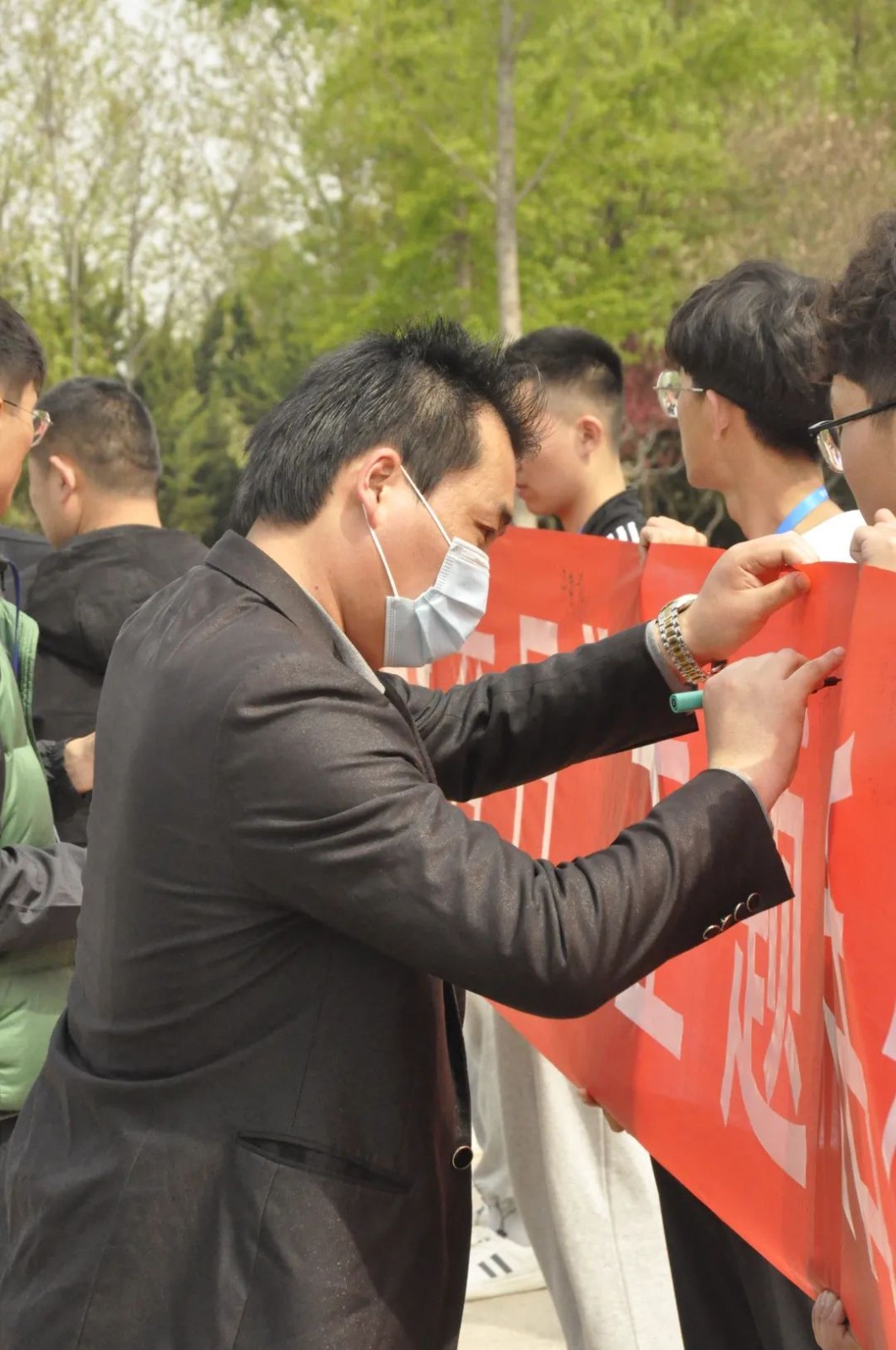 吴启军院助与各二级院系学管代表、辅导员老师依次在横幅上签字,随后各二级院系学生代表上前签字,表现出他们“坚持总体国家安全观,统筹传统安全和非传统安全”的决心和信心。