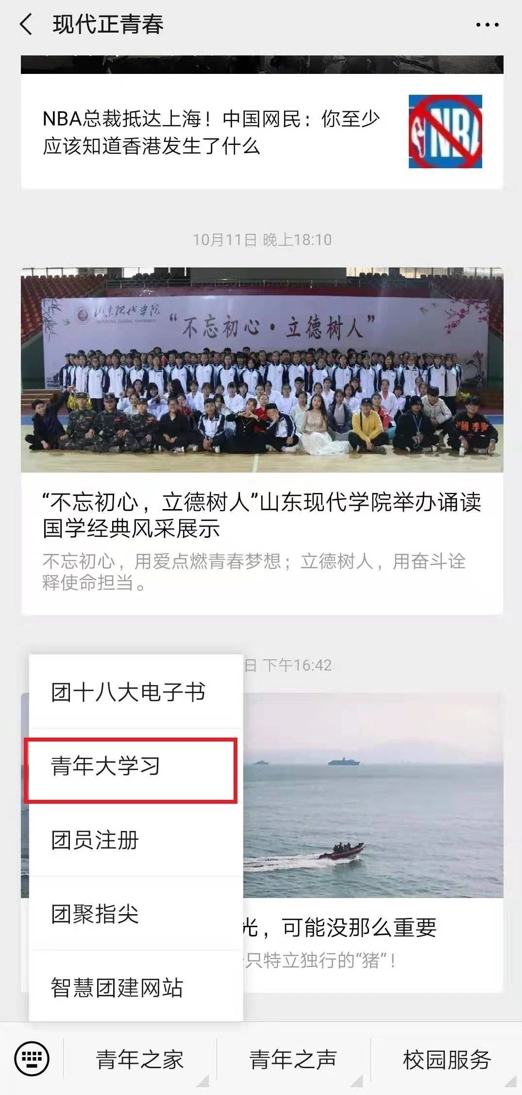 底部菜单 “青年之家”—“青年大学习”
