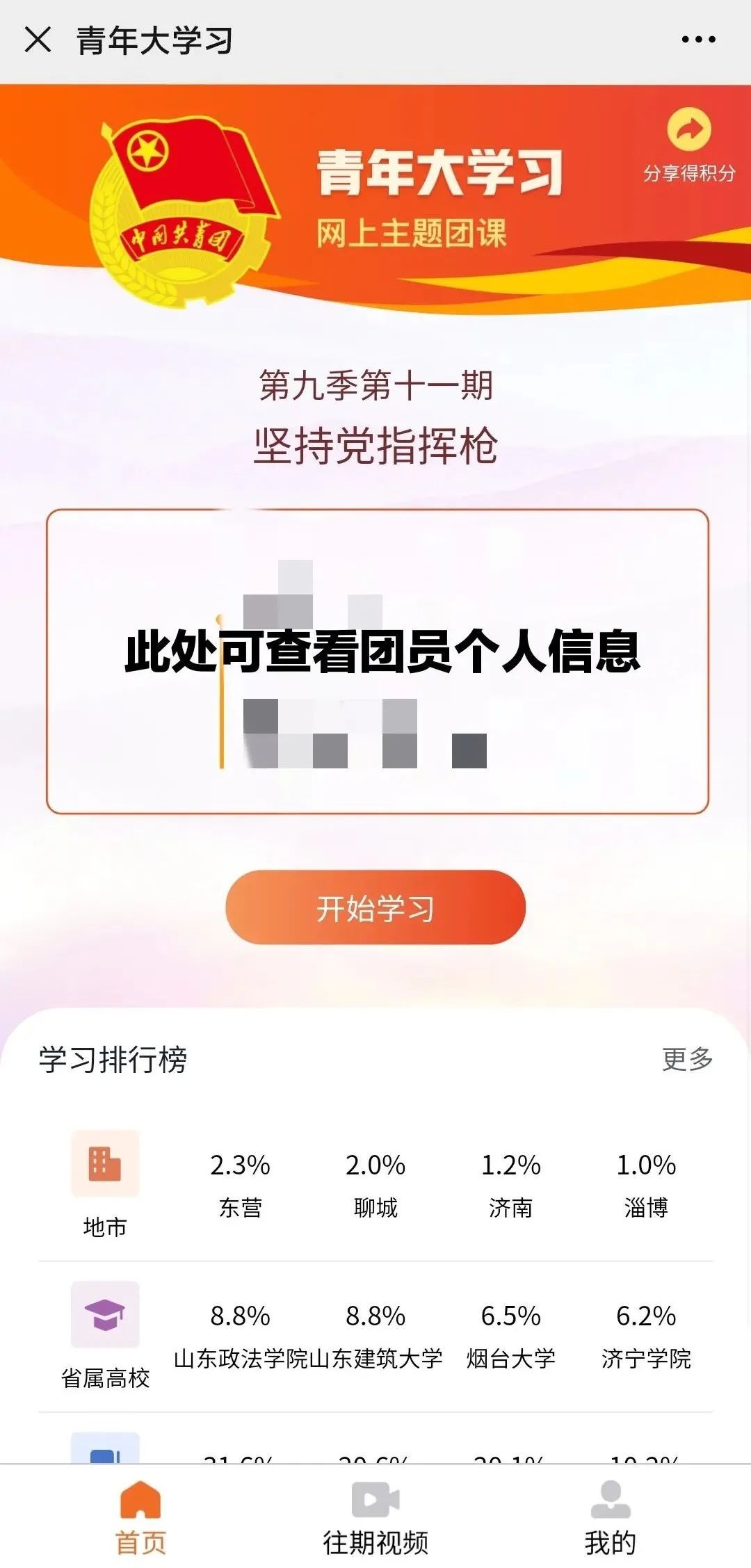 升级后的青年大学习界面