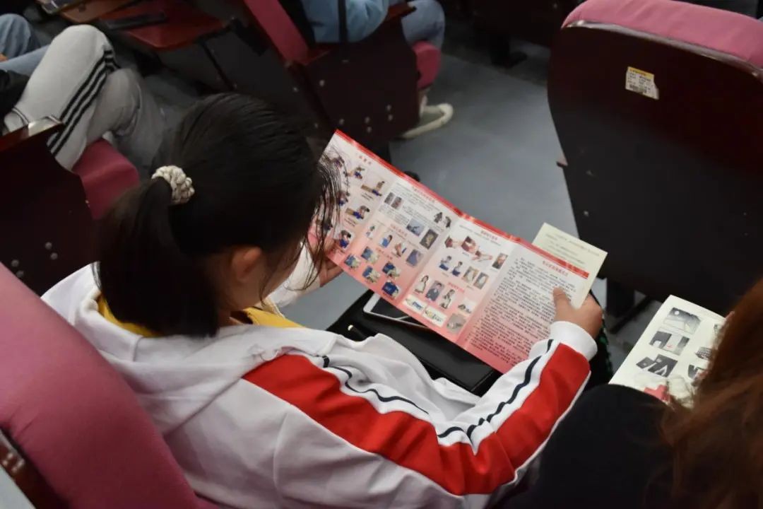 (图为参加讲座的同学正在认真阅读发放的急救知识手册)