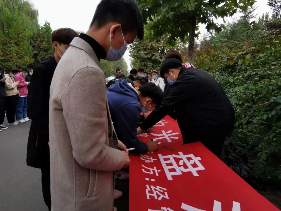 (图为同学们积极参加光盘行动并进行签名)