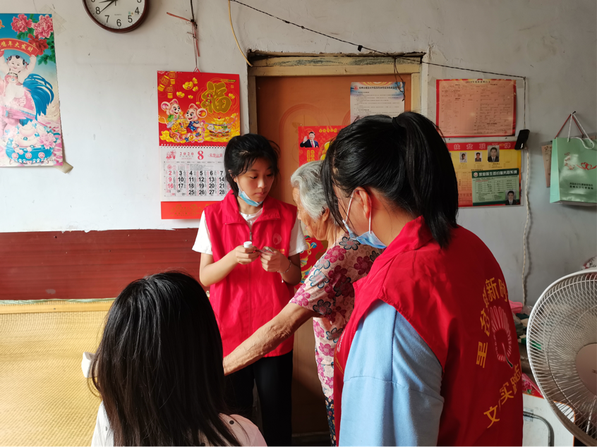 (图为志愿服务队队员为留守老人讲解基本医疗知识)