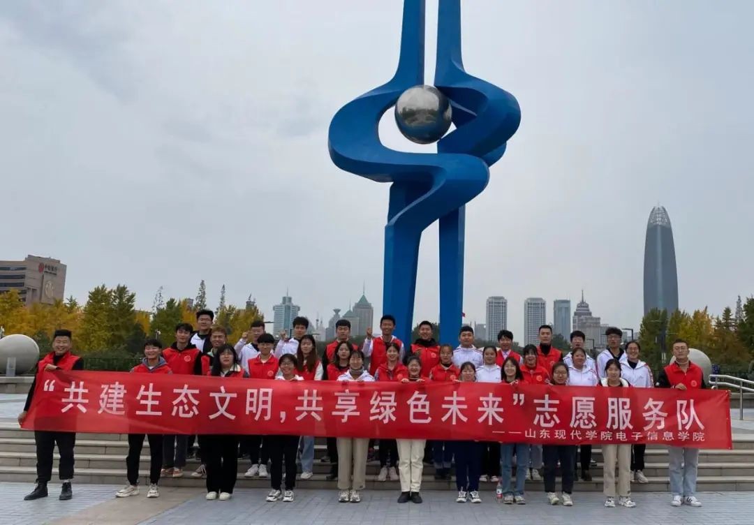 为积极响应习近平总书记的号召,与自然和平相处,树立“绿水青山就是金山银山”的绿色发展理念,山东现代学院电子信息学院于特此开展了“共建生态文明,共享绿色未来”泉城广场义工活动。
