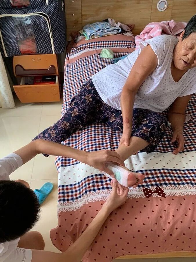 (图为志愿服务队队员在为村民按摩)