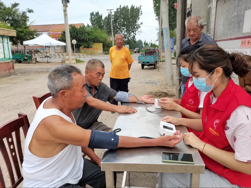 (图为志愿者们在为村民们量血压)