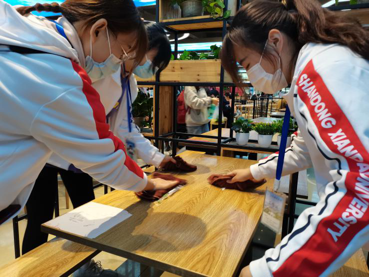 通过这一系列的餐厅义工活动,为学校师生提供了一个温馨、干净、清洁的就餐环境。同时,也增强了同学们做校园清洁卫士、树立良好志愿者榜样的意识,推动了大学生志愿服务活动常态化、规范化、品牌化,更好的丰富了山东现代学院校园文化的内涵。