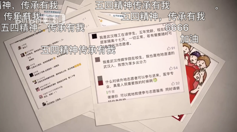 自一百多年前开始,五四精神就在华夏大地的青年人中代代相传。在这次疫情中,80后、90后、00后担负起了保卫国家人民的重任,成为了国家和民族的脊梁。这充满爱的接力棒也将继续传递给下一代青年人,亲爱的少年们,让我们在逆行中成长,长成大人模样,长成祖国未来的希望。