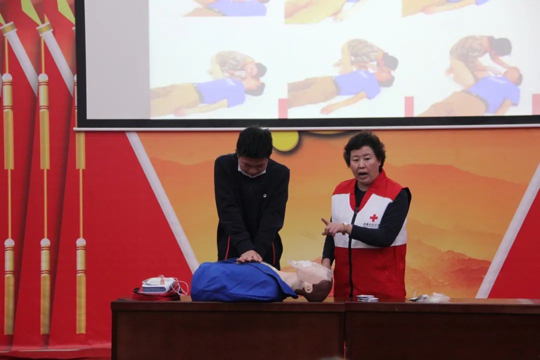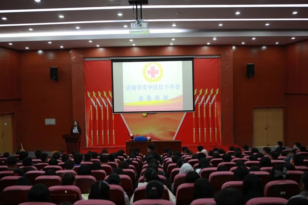 济南市市中区红十字会刘蓉老师作为主讲老师,为帮助大家更好的了解急救知识,使同学们初步掌握急救、自救、互救的基本技能知识和关键性的初级救助实践操作,刘蓉老师用PPT演示、真实事例讲解等方式,让同学们能够在关键时刻更好的自救互救,做到科学施救,给自己、家庭和他人的幸福生活多一份安全保障。