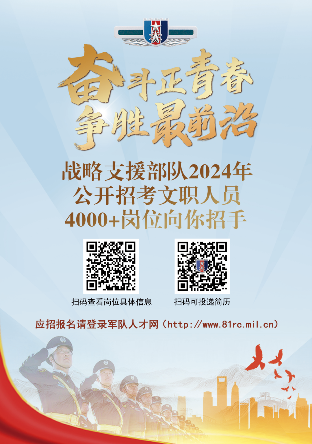 报名已开始!战略支援部队4000+岗位向你招手~