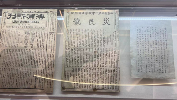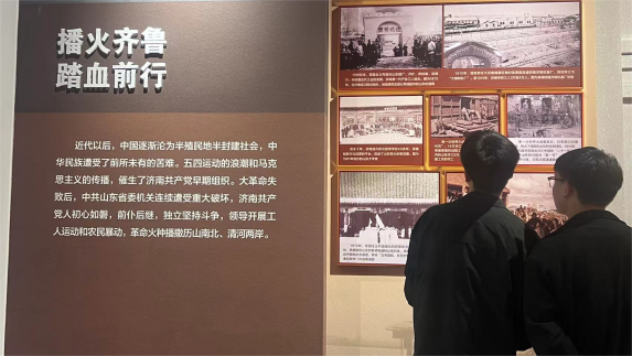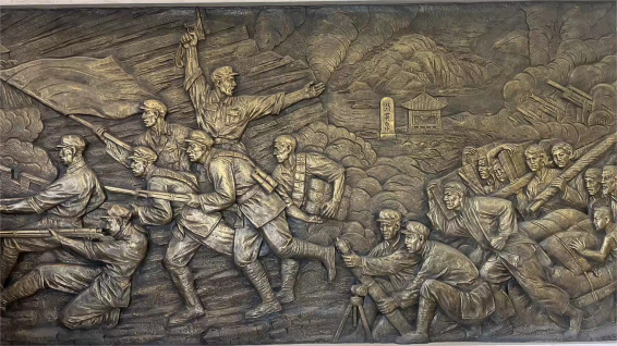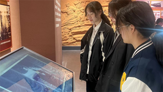 进入展厅,首先映入眼帘的,是鲜红的党旗和国旗,仿佛一下子将同学们带入到了那个战火纷飞的年代:革命先辈们高举着右拳,铿锵有力地宣誓,铮铮誓言代表着先辈们为党和革命奋斗终身的决心。