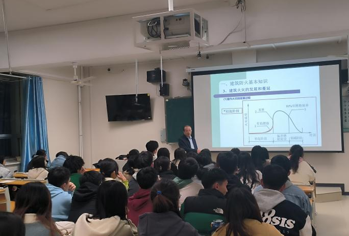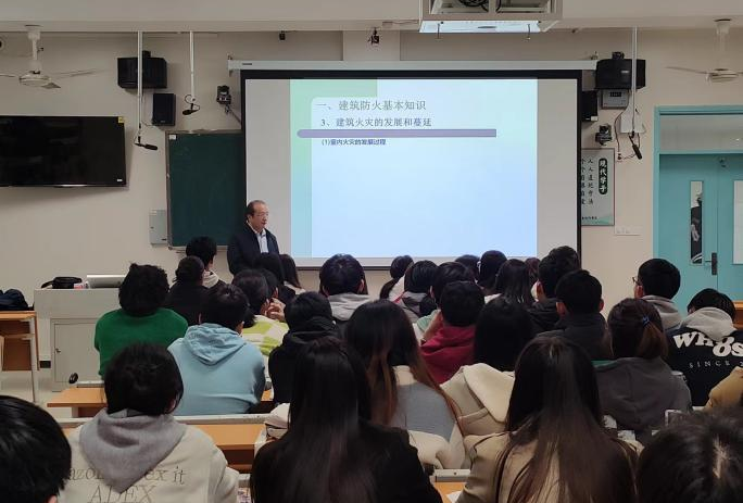 孙跃东教授从当前建筑行业的发展趋势及其热点进行了详细分析,包括新型建筑材料、绿色建筑、智能建造等方面,面面俱到地向同学们叙述我国当前发展的蓝图。随后,孙教授针对实际情况,重点阐述了建筑防火设计的原理和规范,以及室内防火的发展过程,同时结合案例分析了火灾事故的原因和教训,学生们深刻认识到建筑防火的重要性,立志将努力学习专业知识,未来走出社会要为建筑安全事业添砖加瓦。