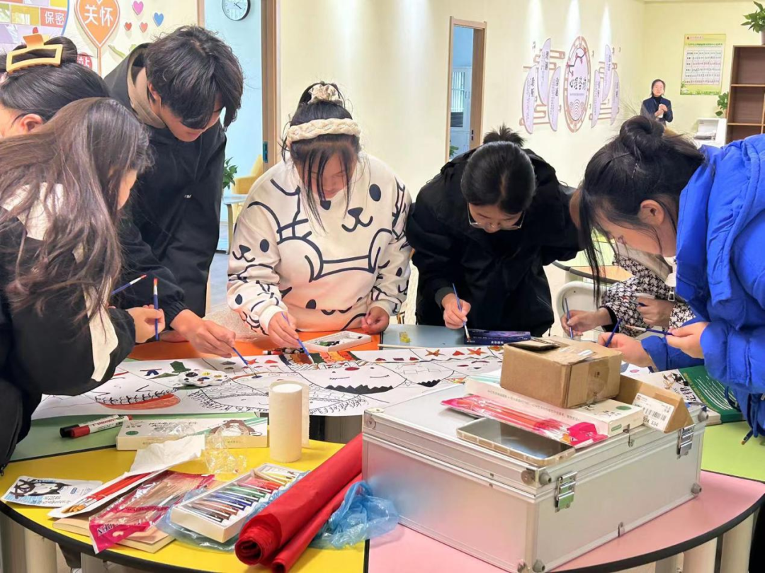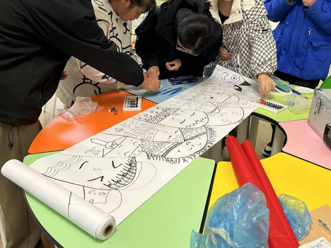 长长的画卷一字排开,同学们俯下身来,用五颜六色的彩笔细细勾勒、尽情发挥。
