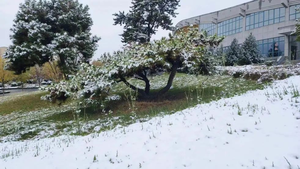 校园沉浸在冰雪世界中