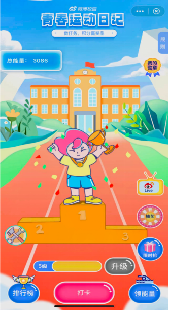 随着成都大运会与杭州亚运会的相继举办,大学生运动意识逐渐提升。为承接青少年运动热情,培养青少年运动习惯,挖掘以体育人的精神资源,加强以体育人的项目建设,由共青团中央青年发展部、国家体育总局群众体育司主办,微博校园承办的#青春运动日记#全国大学生团员常态化运动打卡活动,诚挚邀请全国青少年通过网络打卡记录日常运动,养成健康生活习惯,掀起互联网全民健身新热潮。